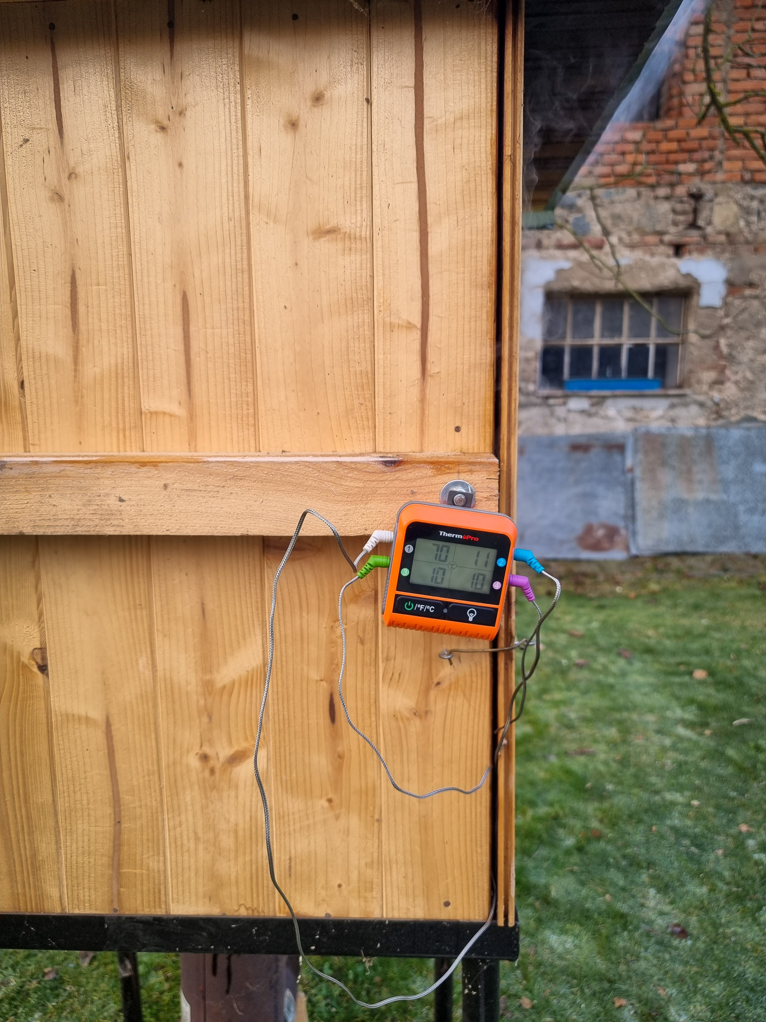 - Dřevěné udírny s kouřovodem v zemi – je velice oblíbenou variantou, kterou potkávám ve svém okolí. Často se jedná o různé kombinace zděná stavba, dřevěná nástavba, kouřovod v zemi. Jedná se o pevné, nepřenosné udírny. Často dokáží velmi efektivně udržovat teplotu. Proto jsou tak populární, tedy minimálně tady u nás.