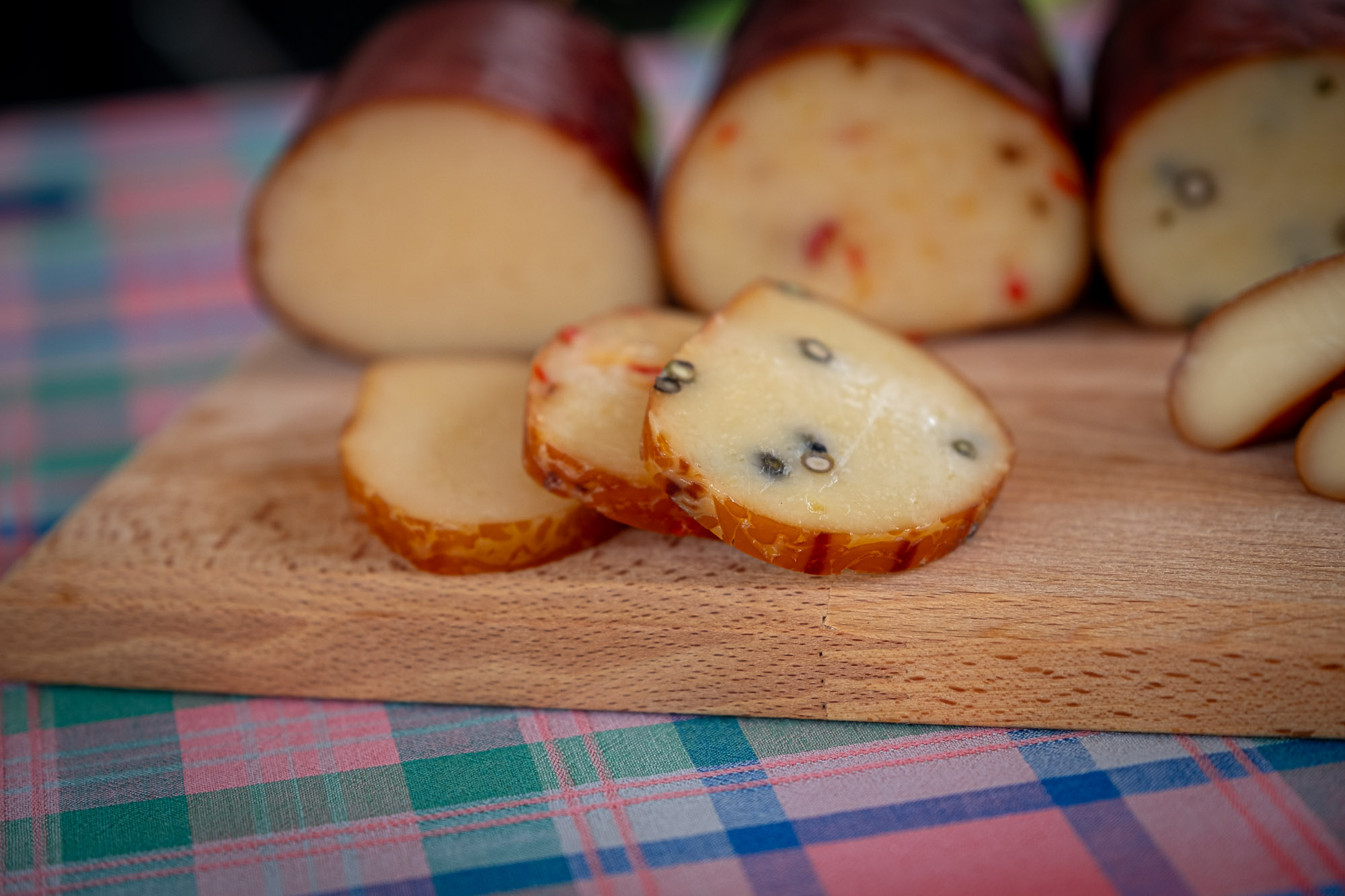 Uzení tohoto sýru již vyžaduje o trochu vyšší teplotu a to proto, aby se nastrouhaný sýr roztekl a propojil s ochucovací přísadou. Teplota však nesmí být moc vysoká, protože jinak by se začal oddělovat tuk od sušiny a to opravdu nechcete.